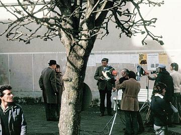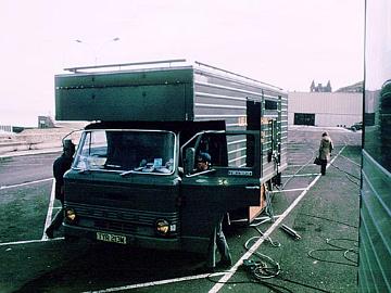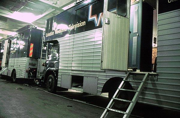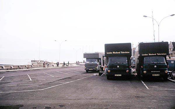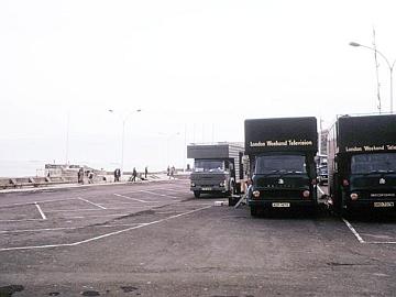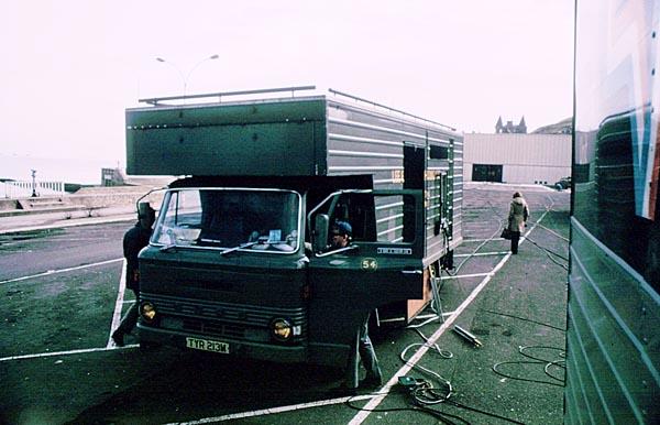 LWT "The Aweful Mr. Goodall" - OB Units on the car deck of ferry Southampton to Le Havre. Jan Langford in VTR Truck.LWT "The Aweful Mr. Goodall" - OB Units on the car deck of ferry Southampton to Le Havre. LWT "The Aweful Mr. Goodall" - Shooting a scene o the Southampton to Le Havre ferry. LWT "The Aweful Mr. Goodall" - Frank Nerini (Designer) and Jim Goddard (Director) play Backgammon.LWT "The Aweful Mr. Goodall" - Jim Goddard (Director) in bar Southampton - Le Havre Ferry.LWT "The Aweful Mr. Goodall" - Jan Langford.LWT "The Aweful Mr. Goodall" - Alan Woolfson (Production Manager) in Arromanches.LWT "The Aweful Mr. Goodall" - Arromanches car park and D Day Museum.LWT "The Aweful Mr. Goodall" - Arromanches with Mulberry Harbour.LWT "The Aweful Mr. Goodall" - Arromanches car park and LWT vehicles.LWT "The Aweful Mr. Goodall" - Arromanches, Lee Electirc Generator and D Day Museum.LWT "The Aweful Mr. Goodall" - Crew shooting by sea wall with Mulberry Harbour in Arromanches.LWT "The Aweful Mr. Goodall" - Robert Urquart rehearsing in Arromanches.LWT "The Aweful Mr. Goodall" - Robert Urquart rehearsing in Arromanches.LWT "The Aweful Mr. Goodall" - Robert Urquart and Isobel Dean rehearsing in Arromanches.LWT "The Aweful Mr. Goodall" - Hotel De Ville in Arromanches.LWT "The Aweful Mr. Goodall" - Crew in Arromanches.LWT "The Aweful Mr. Goodall" - Location in Arromanches.LWT "The Aweful Mr. Goodall" - Crew in Arromanches.LWT "The Aweful Mr. Goodall" - Crew in Arromanches.