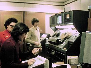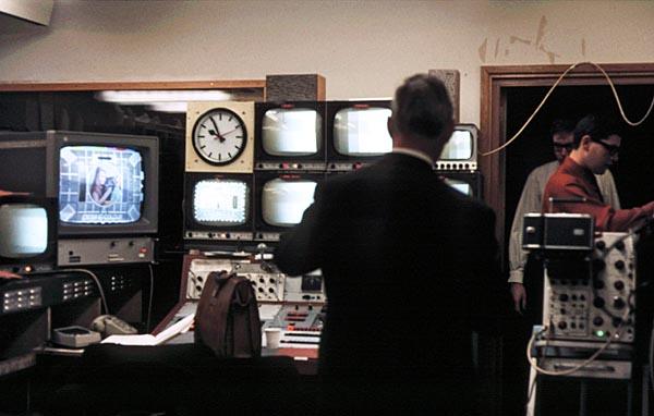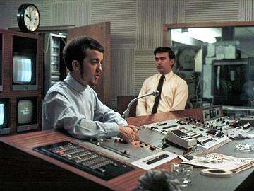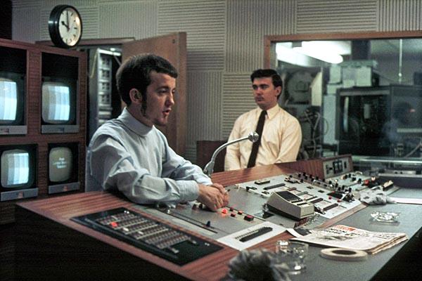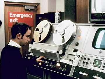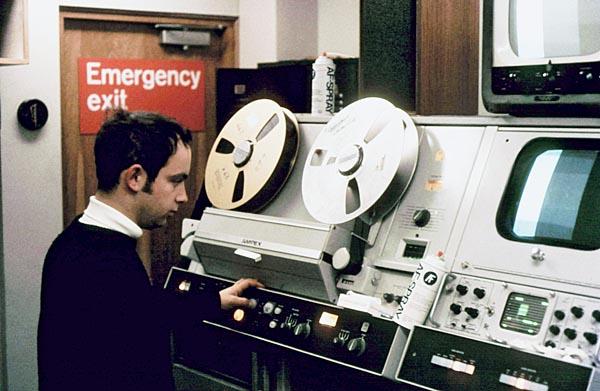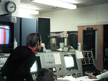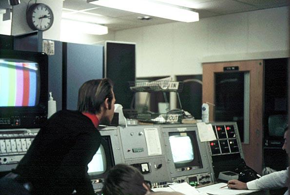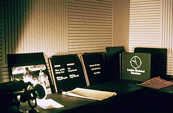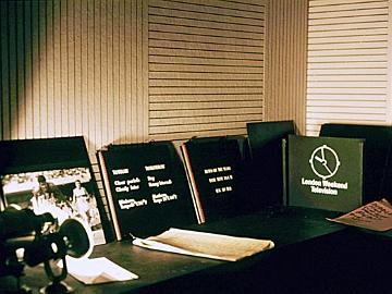 Bob Thackeray in LWT VTR at WembleyMe operating a VR2000 Quadruplex 2" VTR at Wembley.Pye Monitor & Tektronix Waveform Monitor at Wembley.Ampex VR2000 2" Quadruplex VTR.Ampex VR2000 2" Quadruplex VTR.Keith Neimeyer (F/G), Philippa Feller and Andy Sturt in LWT VTR.VTR Control Desk at Wembley.Presentation Control Desk at Wembley.Presentation Control Desk at Wembley - Ray Baron (Transmission Controller) in the foreground and Harry Llufrio (Assistant Engineer) in the background.Presentation Clock at Wembley.