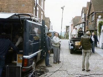 Mapp & Lucia (1983 ish) - ???, Charlie Macher, ???, Sam Donovan, ???, ???, ???.Mapp & Lucia (1983 ish) - Me, on the right, with (Tony Bowe ???).Mapp & Lucia (1983 ish) - Charkie Macher with Sam Donovan.Mapp & Lucia (1983 ish) - In the Foreground Daphne Rennie, ???, Albie Reed. Mapp & Lucia (1983 ish) - Left to Right: Me, Geoff Geach, Gerry Ticehurst, Mike Ayres, Paul Stripp.Mapp & Lucia (1983 ish) - Gerry Ticehurst and Pat Wheeler on sound take a break whilst Simon Farrell takes a picture.Mapp & Lucia (1983 ish) - Geoff Geach takes a break in the sun.Mapp & Lucia (1983 ish) Paul Stripp checking the camera.