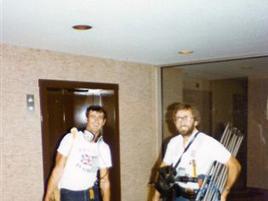 Moscow Olympics 1980 - Me and Ian Stanley leaving the Hotel with the equipment.