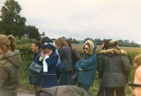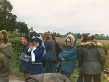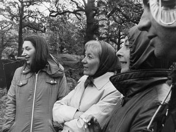 Filming in a Cemetry somewhere in Yorkshire for 'Helen A Woman Of Today' with Alison Fisk and Martin Shaw, early seventies - Left to Right: Ted Flack's back,…