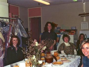 My leaving drinks in Ladies Wardrobe 1975 - Left to Right: ????, Jackie Plumb, Janet Fearnley, Marion Dring, ????.