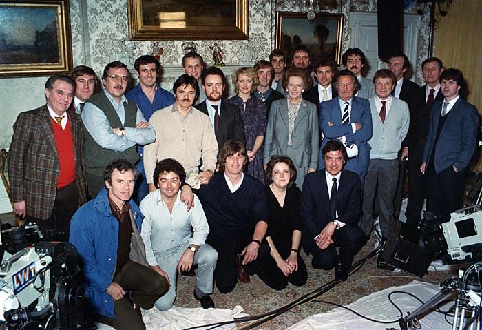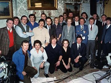 Weekend World - Downing Street 1984 - Back Row Left to Right: Cyril Chamberlain (Props), John Humphrey (Gaffer), Alex Adams (Chargehand Rigger), Dave Currie…