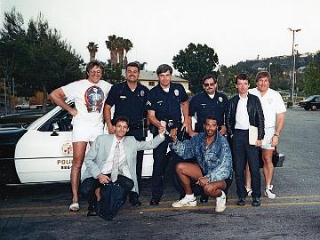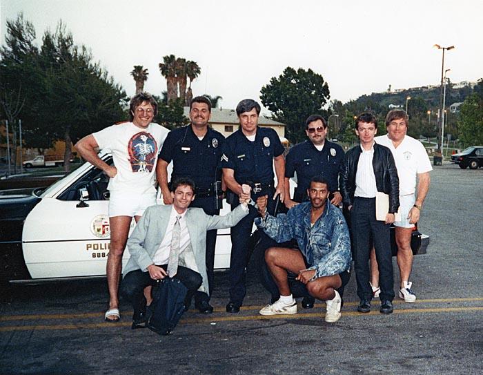 Men on Violence (Factual) 1984-1985 Shot in Los Angeles with LA Police going on a drugs bust - Left to Right Standing: Trevor Salmon (Cameraman), ???…