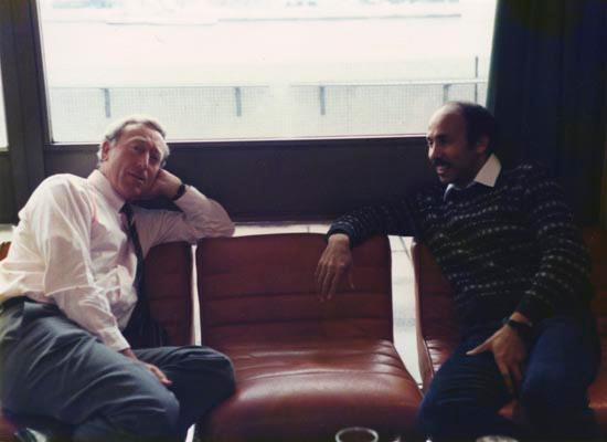 Peter Stephenson and Ali Berkane relaxing in the bar.