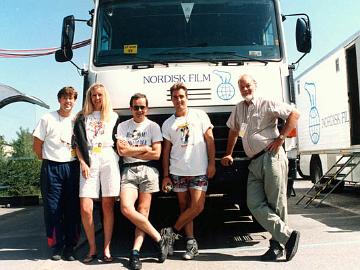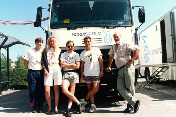 Motley Crew! David Moss, Lynne Callaway, Mike Patterson, James Ramsey, Stan Harding standing in front of the Danish Nordisk Film scanner.
