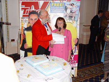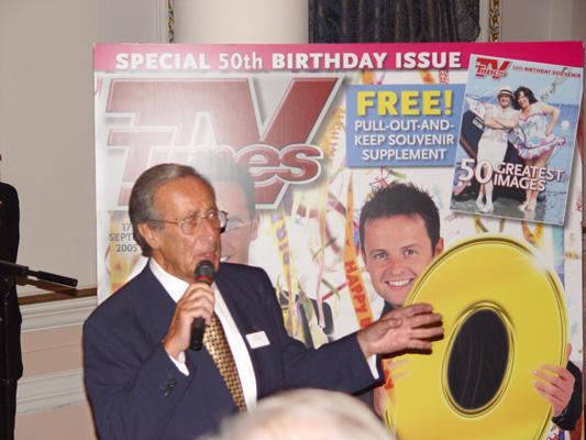 Shaw Taylor conducts the raffle in a novel way, by plucking the numbers from his head!