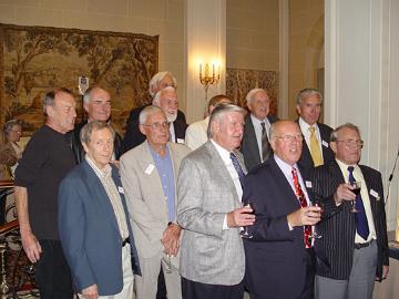 Left to right facing the camera: Vic Gardiner, Eric Jackson, John Reardon, Mrs. Reardon and with backs to the camera Tim Coles and his Wife.