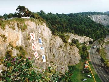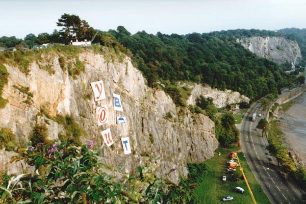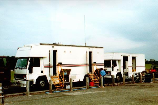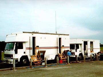 Unit 2 and its Tender parked on a cliff top near Bristol where we recorded an insert for You Bet. The contestants had to absail down the cliff face and unfurl…