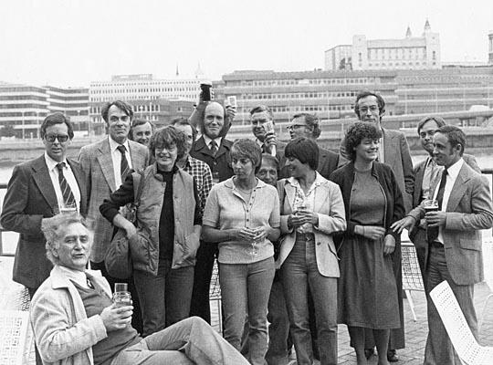 P & I Bar 1985: Front Tony Smith. Rear from left, John Lewis, Ken Playle, Mike Wright, Kate Teague, Frank Snowdon, Alf Jordan, Carol Bordman, Paul Kelly, Geoff…